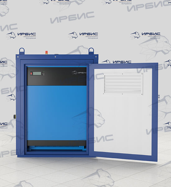 Котел смонтирован в утепленном металлическом боксе. Стенки бокса выполнены в виде трехслойных конструкций, состоящих из профильных стальных листов с внутренним утеплением из минераловатных плит толщиной 50 мм. Для удобства обслуживания и ремонта Ирбис НК передняя панель выполнена открывающейся. На задней панели имеются технологические люки для настройки, технического обслуживания и ремонта. С удаленного пульта наблюдения оператор может контролировать состояние уличного котла во время работы. При возникновении аварийной ситуации котел выключается автоматически и подает сигнал на удаленный пульт наблюдения.