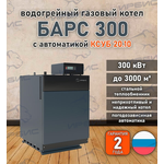 - котел «Барс» с энергонезависимой автоматикой САБК, использующей энергию давления газа и обеспечивающей регулирование температуры воды на выходе и безопасную работу котла.